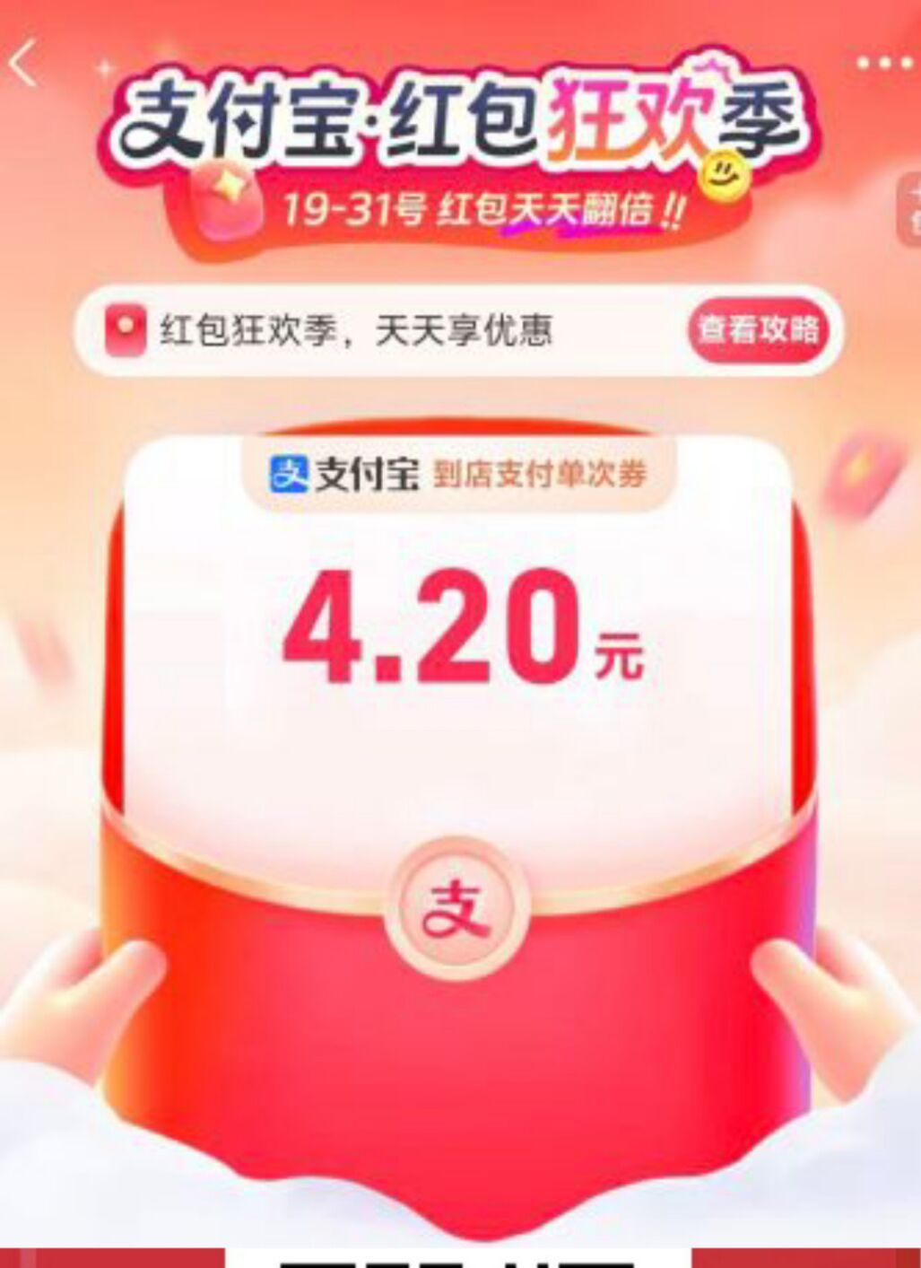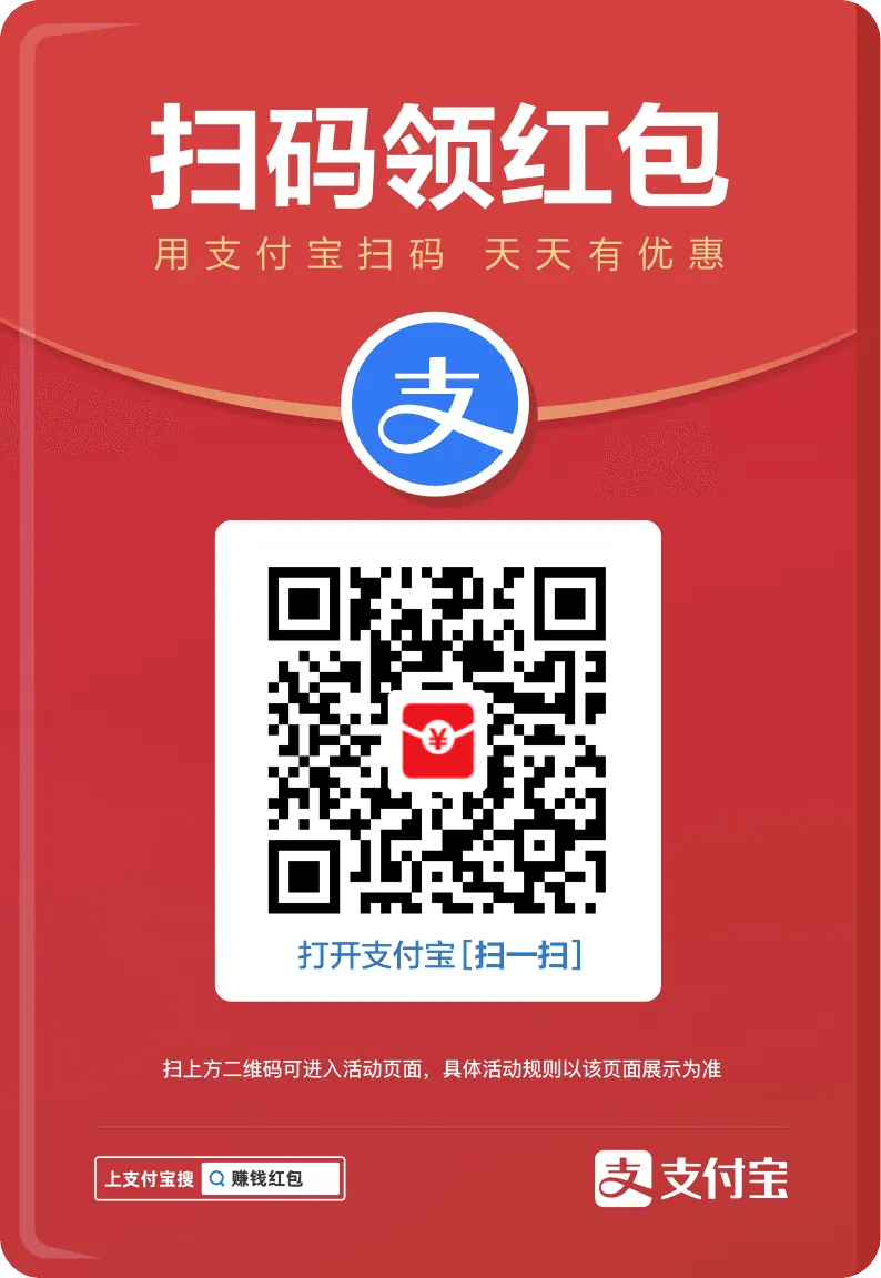 今天大水!支付宝APP扫码->今天大概率领2~10亓左右消费红包